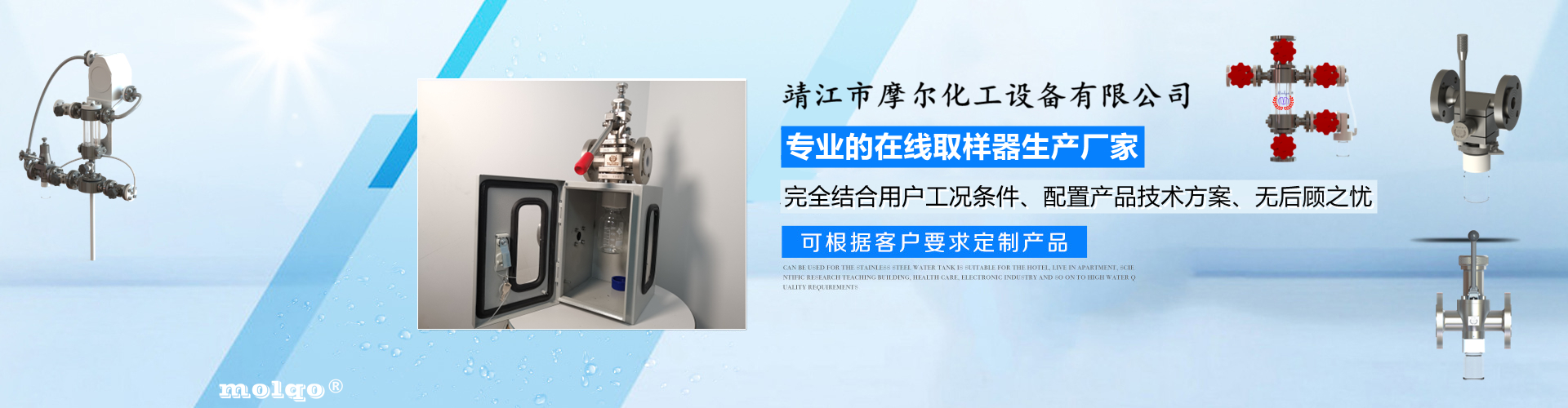 靖江市摩爾化工設備有限公司位于蘇中明珠——江蘇省靖江市城南工業園區東進路北側天元艾爾瑞內,另有生產基地位于靖江市經濟技術開發區新號路1號鼎電科技園內。我公司由數名長期從事化工生產、氟塑襯里模具開發以及機械自控設備的專業人員共同合作成立,致力于提供客戶最優的高效在線取樣、反應及精餾分離設備,為客戶提供合理的設備選型方案,以幫助客戶提高綜合生產效率以及改善生產現場環境為目標。 本公司主要制造及銷售的產品有:釜用在線取樣裝置,管道取樣閥,釜用清洗噴淋裝置、搪玻璃設備、GMP專用搪玻璃設備、氟塑襯里設備、攪拌器、釜用機械密封、氣動閥門及搪玻璃管道、襯氟閥門管道、非標不銹鋼容器,精餾塔塔器、片式冷凝器及PTFE密封件、鋯、鈦、鉭、鎳等加工件制品。我司是一家集研發銷售、設計咨詢服務于一體的專業···| 德州市 | 衡东县 | 中方县 | 巧家县 | 山丹县 | 长海县 |